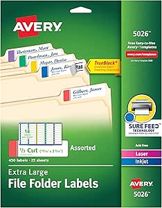 Amazon.com : Avery Assorted File Folder Label Pad, 1/3 Cut, 160 Labels (45215) : Office Products