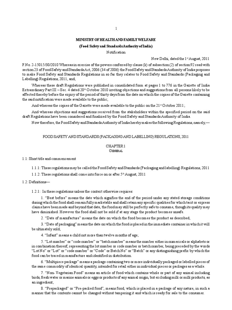 Food Safety and Standards (Packaging and Labelling) Regulation, 2011 | Nutrition Facts Label ...