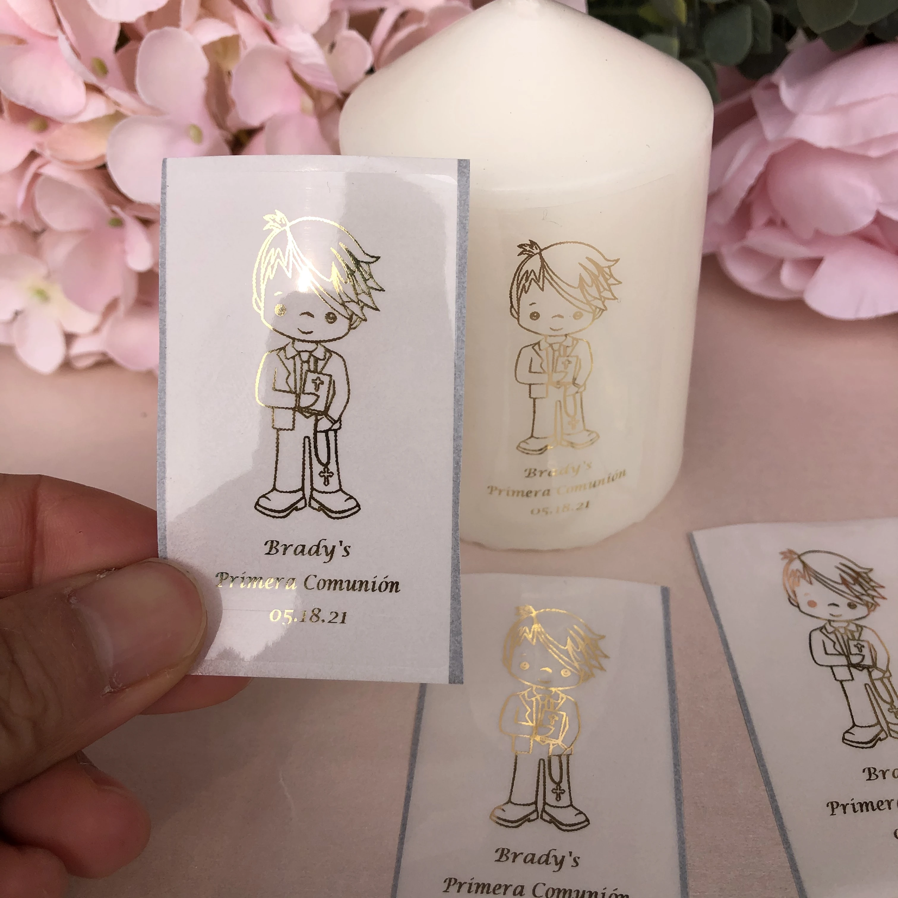 60 Boys mi primera comunion candle label Custom my first communion Confirmation Christening thank you stickers favours labels