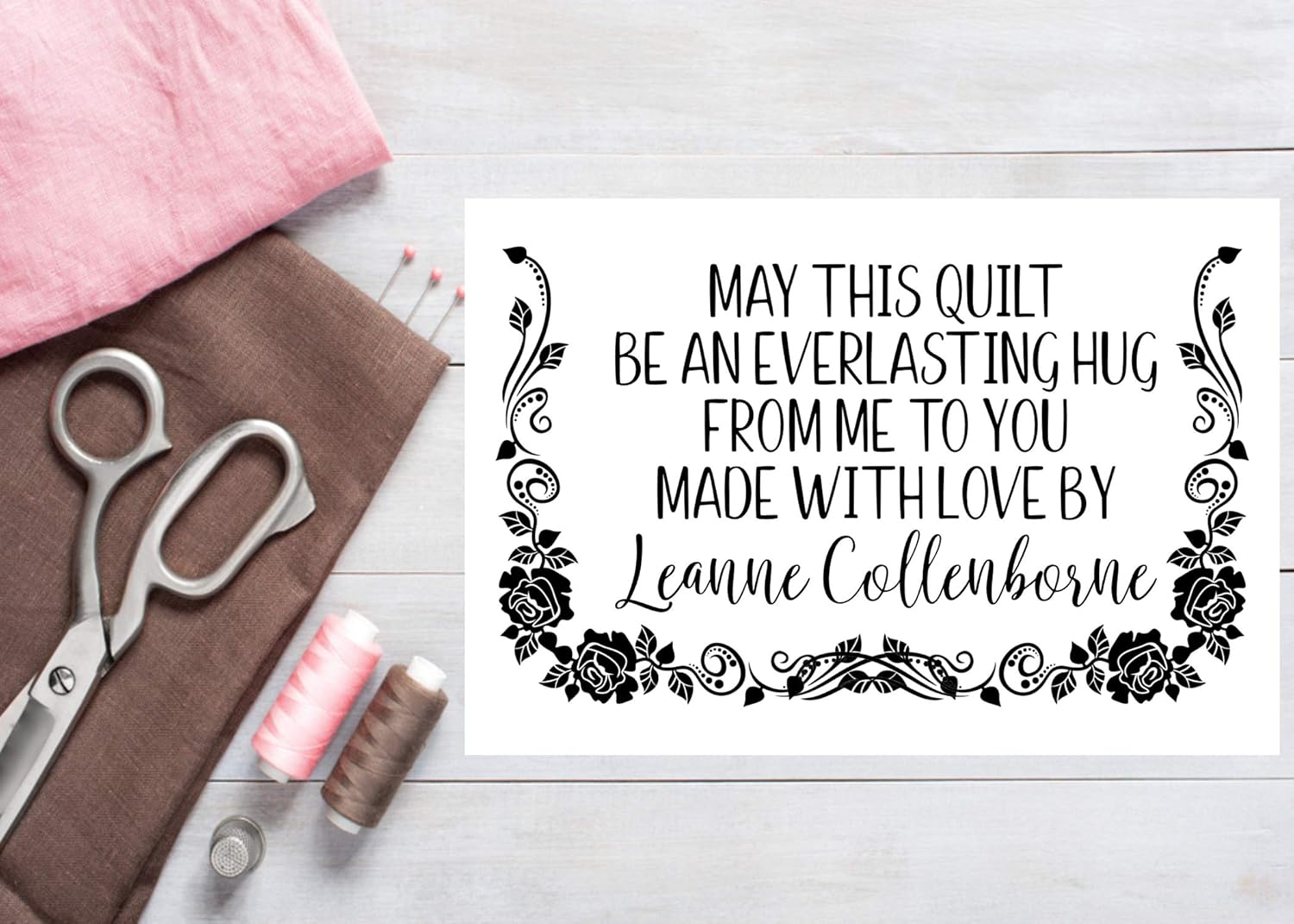 Personalized Quilt Labels/free Shipping/everlasting Hug From - Etsy ... Buy any (3) or more of our individual quilt labels or sets and save 10% by using the code QUILT3 MUST READ BEFORE MAKING PURCHASE If you order 1 label, you will receive 1 label, not a full panel If you order 6 labels, you will receive 6 labels on a half panel If you order 15 labels you will receive 15 labels on a fabric panel