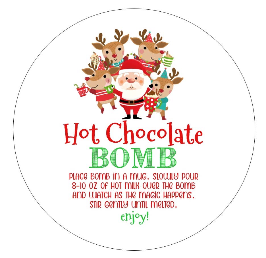 Hot Chocolate Bomb Labels | Cocoa Bombs Sticker | 2" Circle Stickers | Christmas Party Favor | Santa Mug Gift or Business Packaging Label