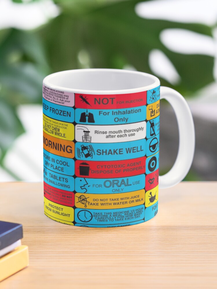 Acid Warning Label Mug, Printed Coffee Cup - Well Done Goods, by Cyberoptix